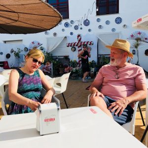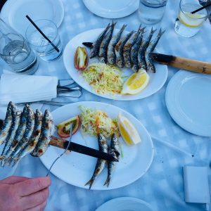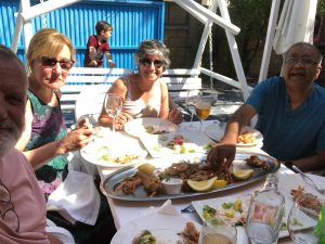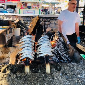 This is on the beach with the boat where they smoke/cook squid. Second time we’ve been – very decent paella.