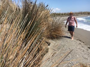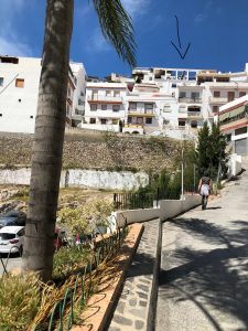 A pleasant two and a half hour walk from Salobrena via el campo and then along the beach. We passed a nice beach area with parking – Playas del Delta del Guadalfeo and eventually past a fine brutalist church.