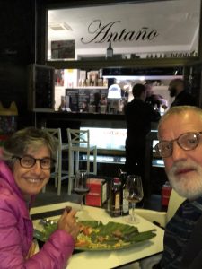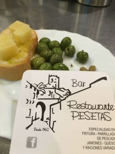 The start of the pub crawl. In Plaza Ayuntiamento near the museum, high up on the rock in the old town. Had Rioja and tapas – food looked good, but had more bars to visit!